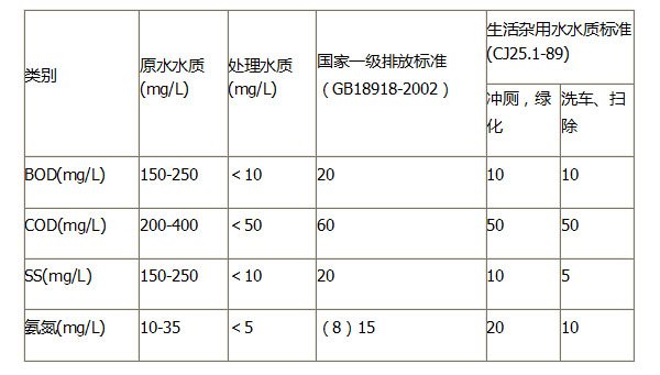 ▲出水水質(zhì)好:采用了先進(jìn)的膜生物反應(yīng)器技術(shù),使系統(tǒng)出水水質(zhì)在各個(gè)方面均優(yōu)于傳統(tǒng)的污水處理設(shè)備,出水水質(zhì)在感官上已接近于自來水的情況,可以作為中水回用。